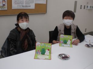 クリスマスカード製作の後は、いつものようにお茶とお菓子で楽しいひと時を過ごしました。今日のテーマは「12月の事」です。大掃除をする人、餅つきをする、お正月の準備をする等々賑やかに話しが盛り上がりました。 勿論おせち料理を作るという人もいましたが、今は作っても食べる人がいないから、食べるくらい買うのよ…という人も。