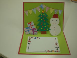 今日も多くの方の参加の下カフェを開店しました。 まだ少し早いですが、今日のカフェでは「飛び出す クリスマスカード」を作りました。