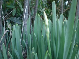 外に出て見つけた春は、水仙の蕾。花が咲くのが楽しみです。