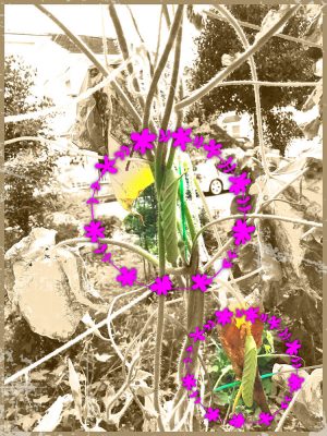 緑色の他にも、金色だったり、黒だったり、様々なイモムシが・・・