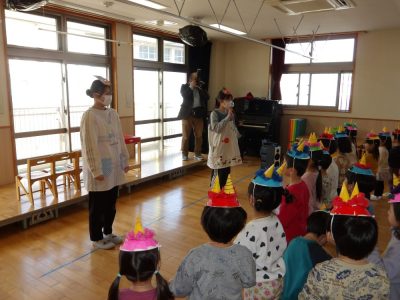 子もいますが、今年は豆まき会の後半に