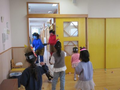 お部屋の入り口にはいただいたヒイラギとイワシの頭を飾って鬼が入らないようにしていましたが、