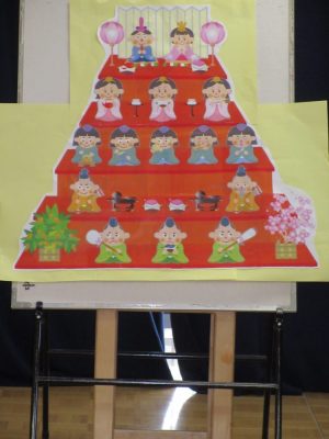 ホールでお雛様クイズをしたり、「うれしいひなまつり」の歌を