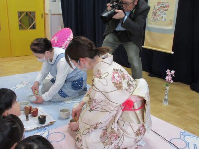 昨日は4歳児さん、今日は5歳児さんがお茶会を体験しました。