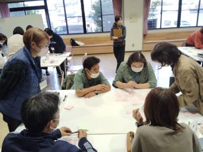 講義では、地域社会と法人のつながりを深めるための視点や実践例についてお話をいただいた後、班ごとに「法人の良いところ」を書き出し、それをどのように地域へ還元していけるかを話し合いました。